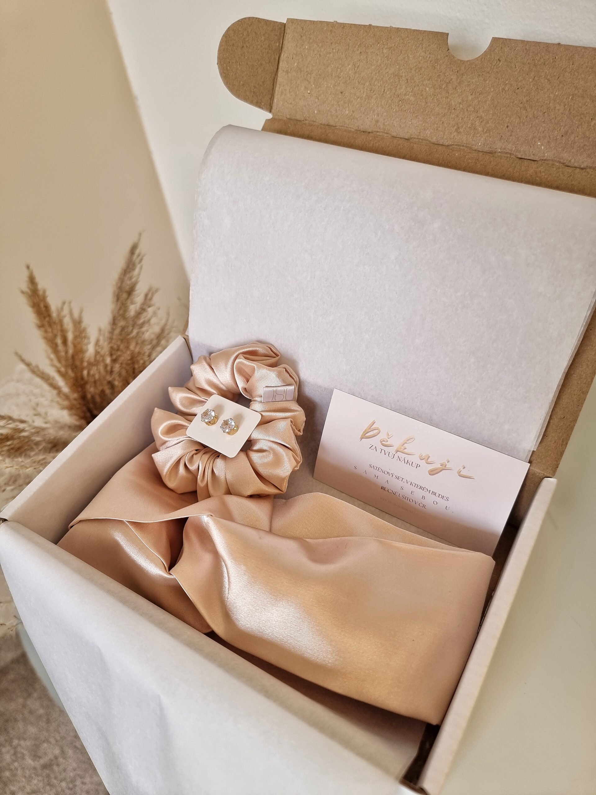 Satin set – luxusní čelenka a gumička z kvalitní saténové látky.